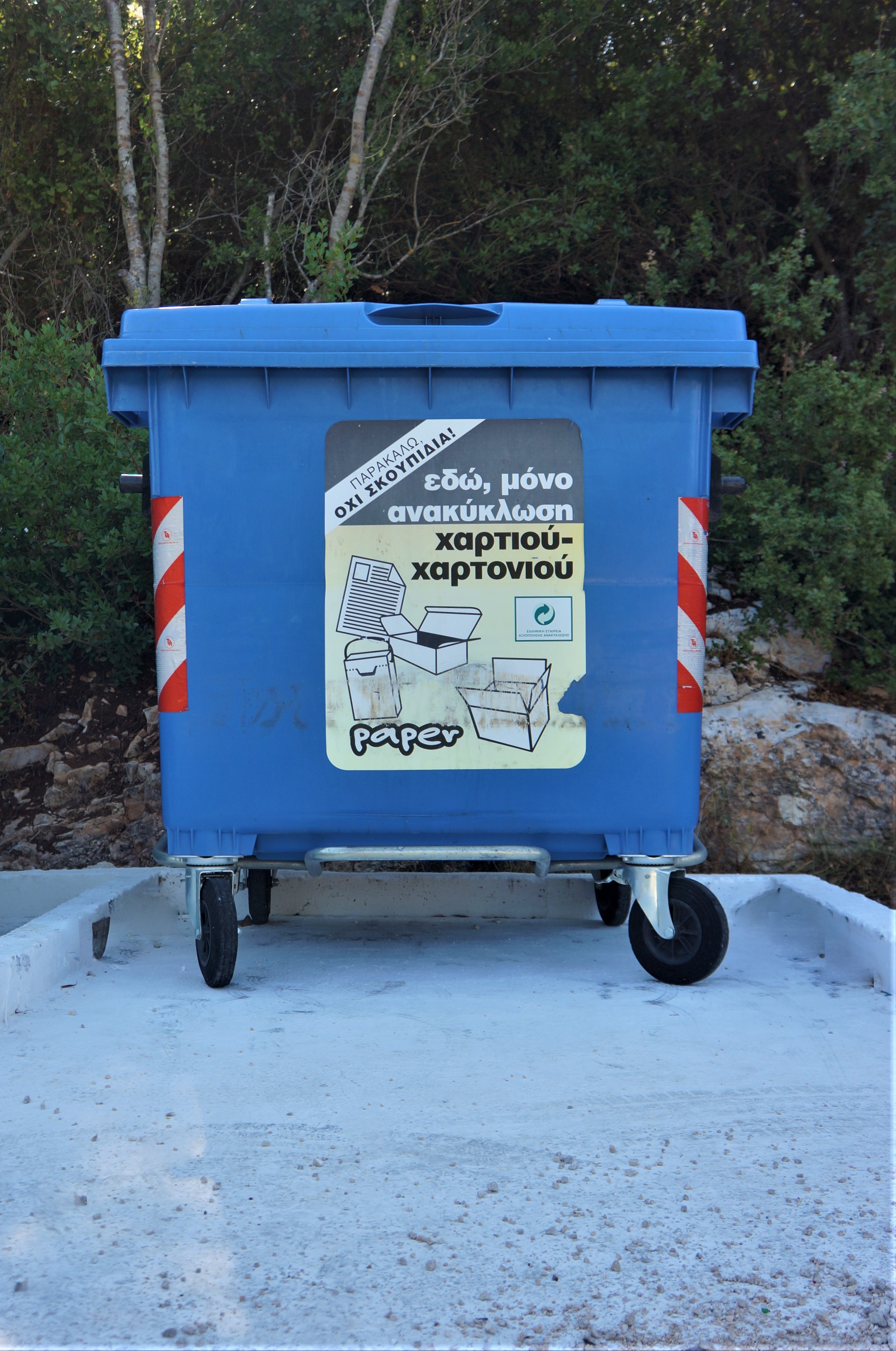 Μπλε κάδος στο Φισκάρδο Κεφαλλονιάς (από το αρχείο της Ε.Δ.Α-ΚΙ Α.Ε Ο.Τ.Α)
